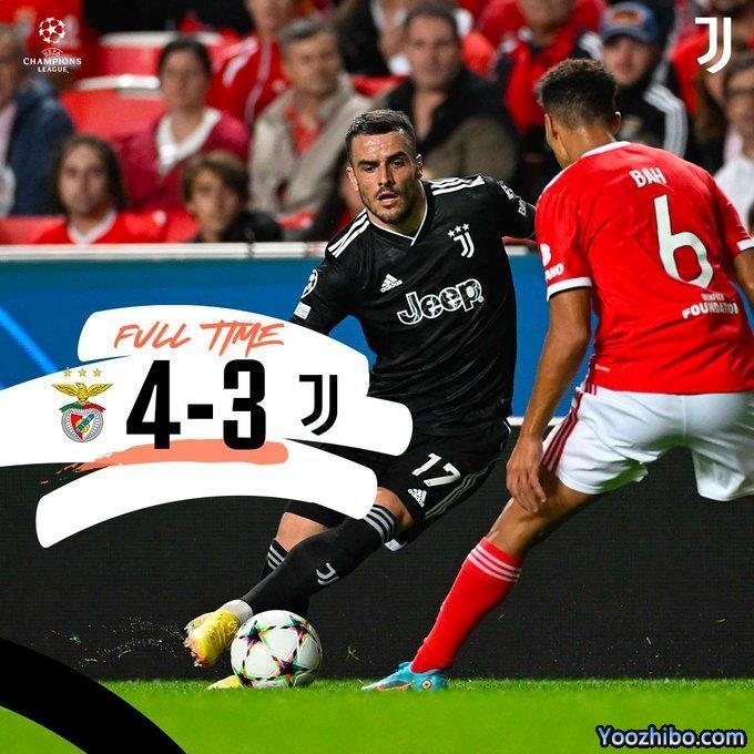 24直播网10月26日,尤文图斯在欧冠小组赛中3-4不敌本菲卡,小组赛5轮仅1胜,其余全输,积3分,提前一轮小组出局。