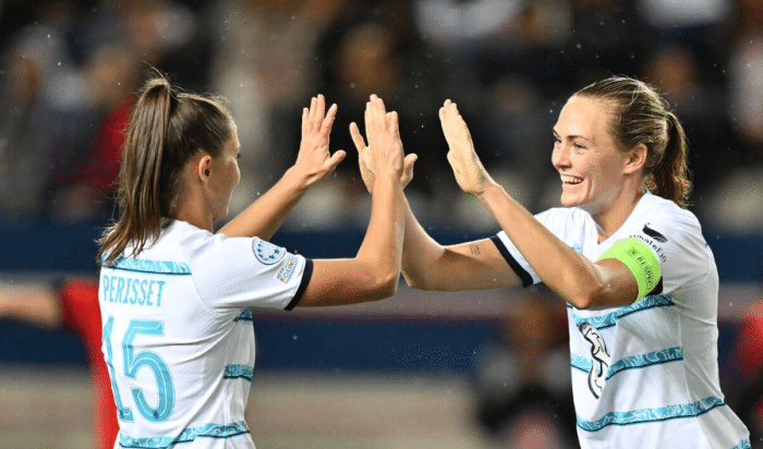 巴黎圣日耳曼女足本赛季继续被里昂压制,非常憋屈,法女甲已经踢完5轮比赛,大巴黎4胜1平拿到13分,暂列积分榜第二名,里昂女足5连胜拿到15分,独自领跑。由于近期硬仗多次输给里昂女足,大巴黎似乎陷入了怪圈,硬仗继续输球,此役面对切尔西女足,大巴黎女足场面占据优势,但是仍被击溃。