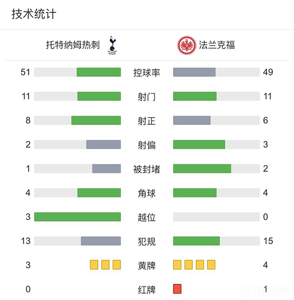 全场结束,热刺3-2法兰克福!