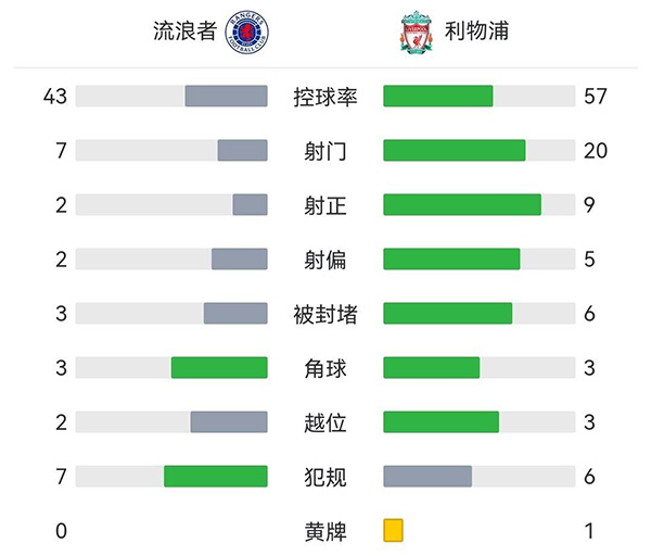 全场结束,最终利物浦7-1击败格拉斯哥流浪者。