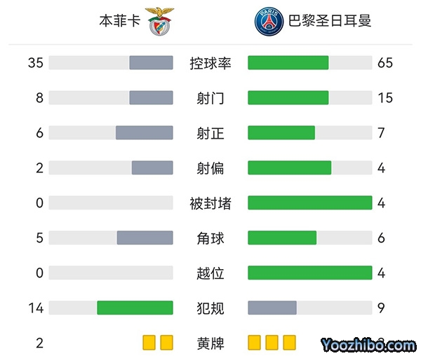 全场比赛结束,巴黎圣日耳曼1-1战平本菲卡。