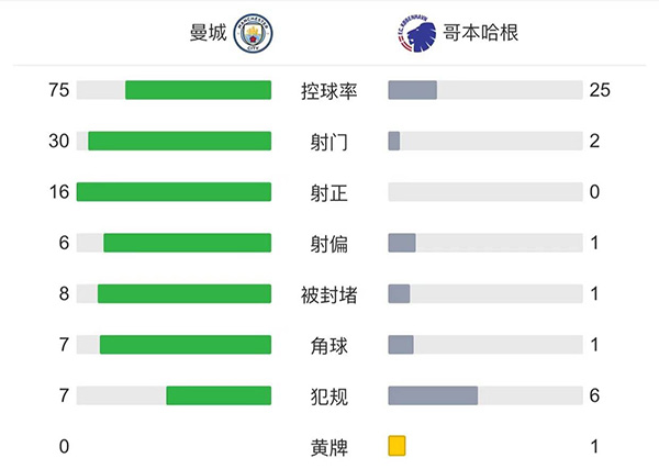 第39分钟,格拉利什左路带球突入禁区,做球给禁区线上的戈麦斯,戈麦斯远射打在霍奇奥拉瓦腿上弹进球门!曼城3-0哥本哈根!