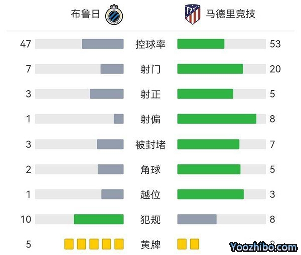 马竞0-2布鲁日 格列兹曼失点+进球越位