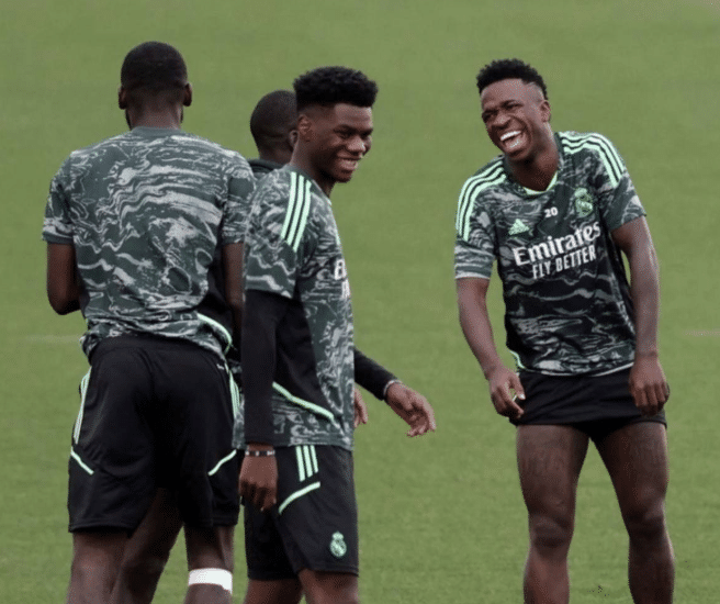 两支牌面和实力相当的队伍,踢成了一边倒,巴萨输球之后也让皇马球员的动态获得了关注,皇马球员本泽马和小熊均在巴萨输球夜更新了社交动态,本泽马晒出欧冠奖杯,写上“晚安”;小熊直接晒出在训练场上咧开大嘴狂笑的照片。虽然两人都没有嘲笑巴萨的本意,但是无形中与巴萨遭拜仁5连杀的耻辱画面产生了联系,尤其是小熊的大笑,让一些记者也出来为小熊说话,澄清小熊的狂笑并不是嘲笑巴萨。