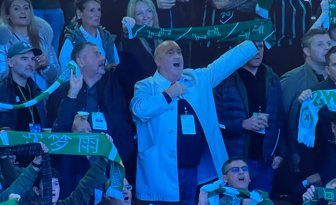 这场比赛凯尔特人主场的球迷是非常疯狂的,虽然球队吃到惨败,但依旧不遗余力的给球队加油助威。现场还有中国元素,一名年轻的凯尔特人球迷高举沈梦雨的围巾,在现场支持主队。