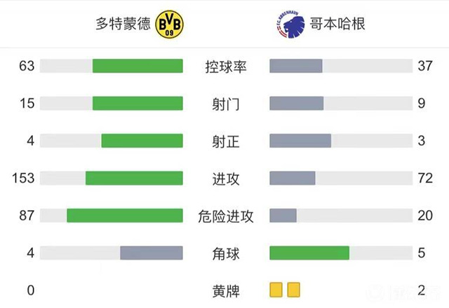 全场比赛结束,多特3-0击败哥本哈根。