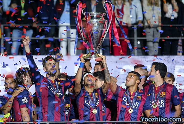 2015年6月8日的柏林奥林匹克球场,本届欧冠决赛在此进行,对阵双方为尤文图斯与巴塞罗那。最终巴塞罗那凭借拉基蒂奇、苏亚雷斯、内马尔的进球,以3-1击败了尤文图斯,队史第五次夺得欧冠冠军,同时也使得巴塞罗那成为历史上第一支两次加冕三冠王的俱乐部。