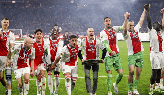 来源:24直播网06-20 17:0924直播网06月20日讯 在滕哈格的率领下,欧冠4冠王阿贾克斯强势爆发,在过去一个赛季顺利拿到了荷甲冠军,而且在欧冠踢出了很有竞争力的一面,小组赛6连胜狂飙,一度成为了大黑马。阿贾克斯的疯狂主要体现在进球方面,他们34轮荷甲打进了98球,只丢了19球,净胜球高达79个,堪称荷甲独一档的攻守表现。