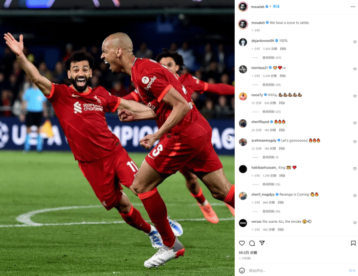 24直播网05月05日讯 今天凌晨,皇马3-1击败曼城,总比分6-5逆转进入欧冠决赛,赛后萨拉赫在Instagram上发文表示要复仇。