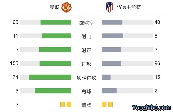 全场比赛结束,曼联0-1不敌马德里竞技,总比分曼联1-2被马竞淘汰。