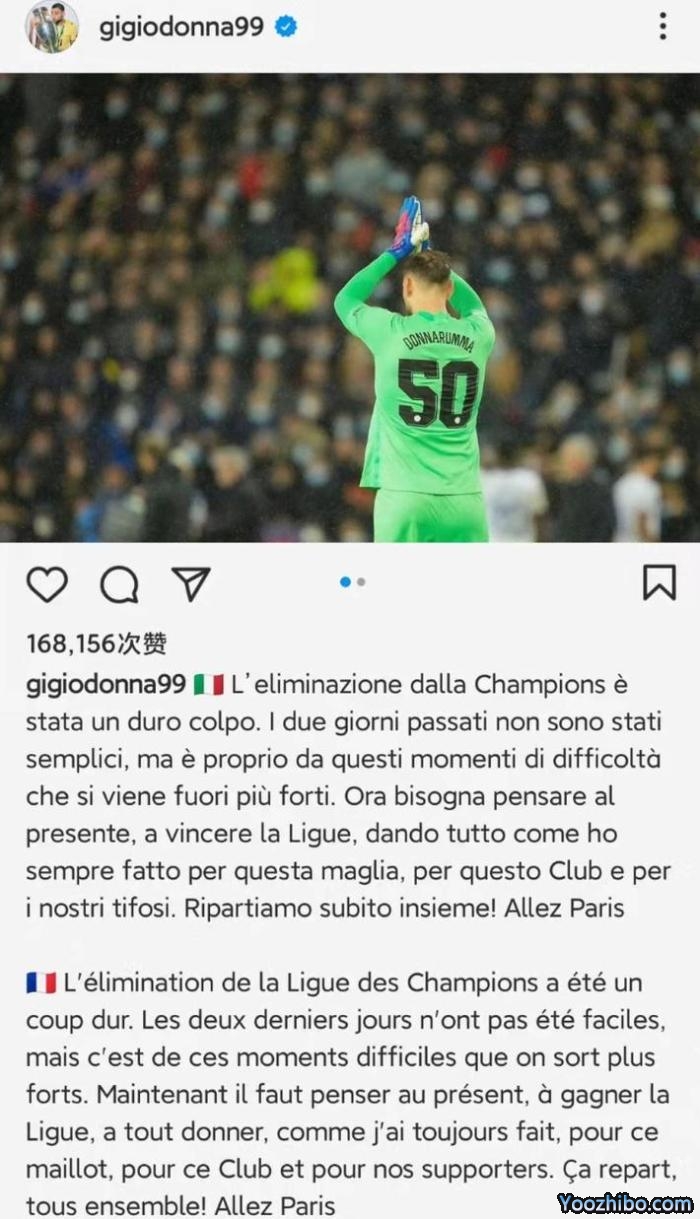多纳鲁马写道:“欧冠出局是一个沉重的打击。过去的两天不容易,但正是这些艰难时刻,我们才会变得更坚强。