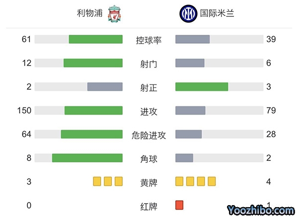 全场比赛结束,利物浦0-1国米。