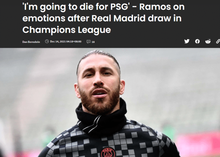 24直播网12月14日讯 昨晚,巴黎圣日耳曼在欧冠16强中抽到皇家马德里,拉莫斯将迎战旧主,抽签结果出来后,这位西班牙传奇中卫接受了媒体采访。