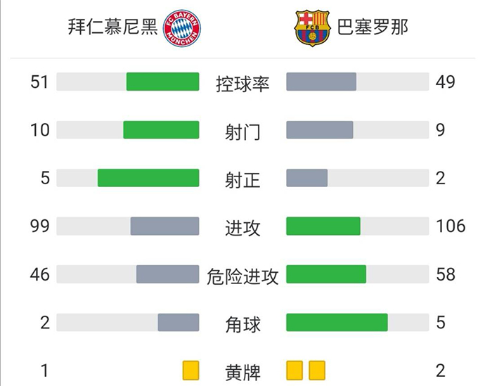 第92分钟,库蒂尼奥主罚任意球传中直接出了底线。全场比赛结束,拜仁慕尼黑主场3-0完胜巴塞罗那。