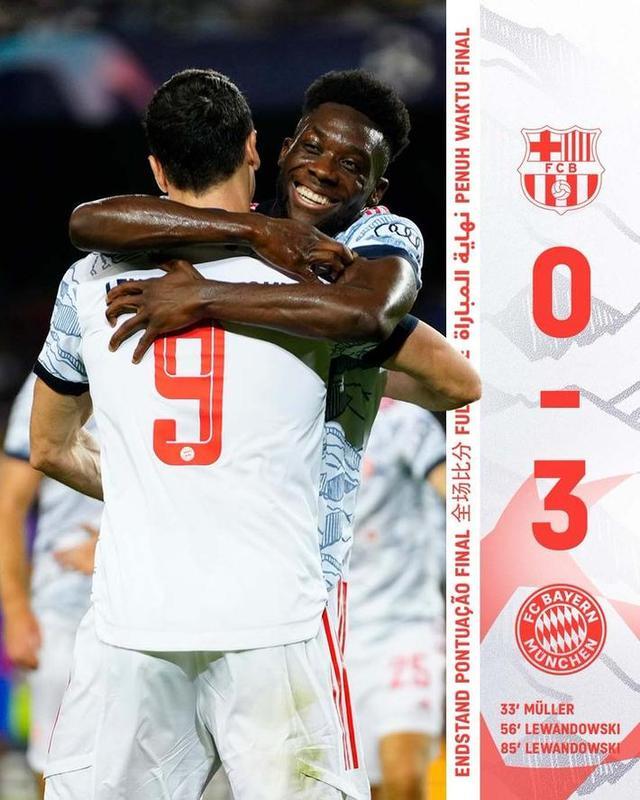 今天凌晨,莱万梅开二度帮助拜仁在新赛季首轮欧冠小组赛中客场3-0完胜巴萨