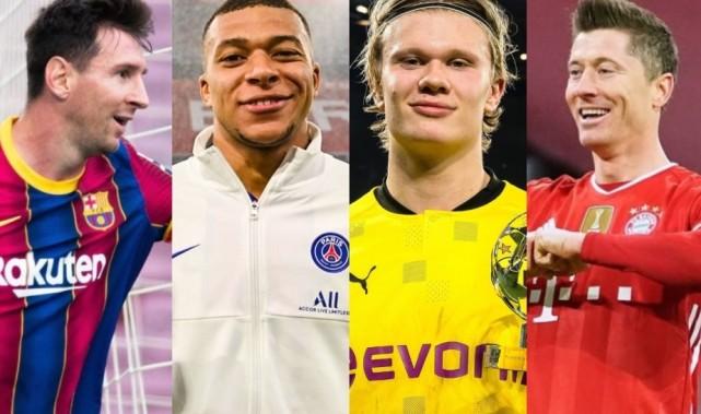 前锋:哈兰德(多特蒙德)、姆巴佩(巴黎)、莱万多夫斯基(拜仁)、·本泽马(皇家马德里)、内马尔(巴黎)、梅西(巴塞罗那)