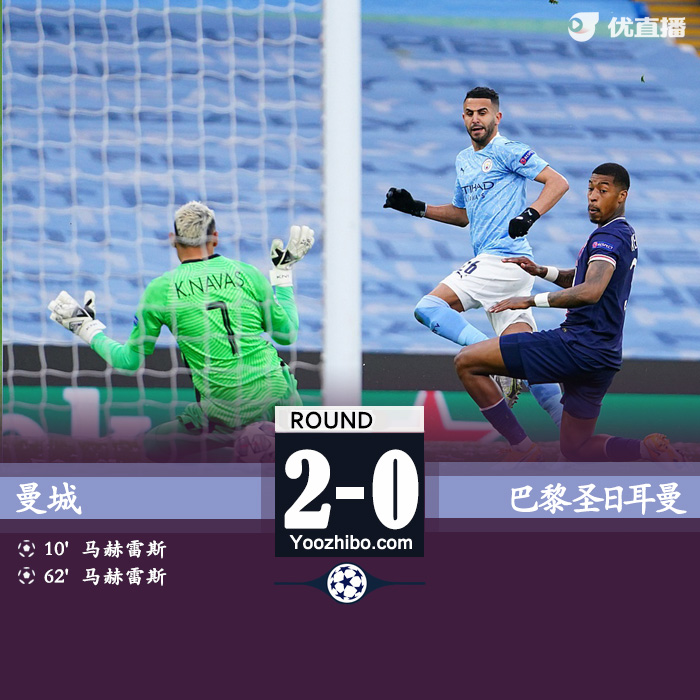 曼城2-0巴黎总分4-1进决赛 马赫雷斯两球迪马利亚染红