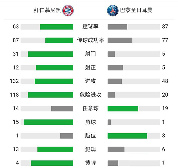 全场比赛结束,最终拜仁主场2-3不敌巴黎。