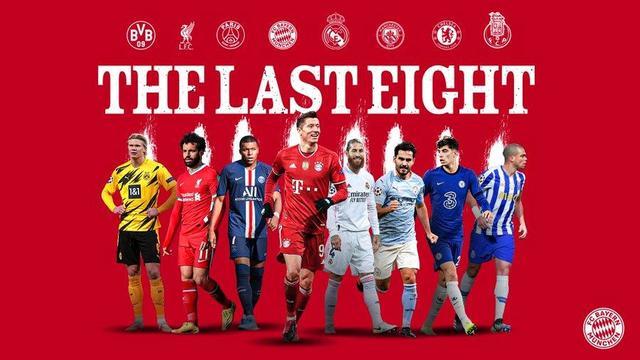24直播网3月18日讯 今天凌晨,切尔西和拜仁在欧冠八分之一决赛中分别淘汰马德里竞技和拉齐奥,本赛季的欧冠八强球队已经全部诞生。