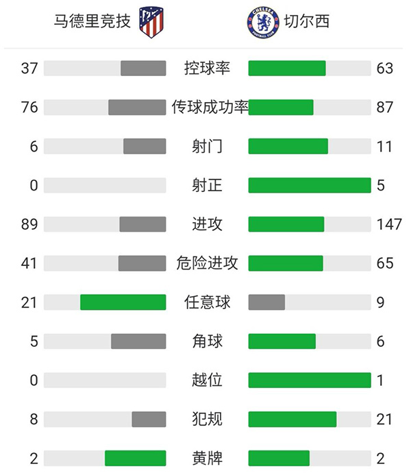 6分钟补时后全场比赛结束,最终马竞主场0-1不敌切尔西。