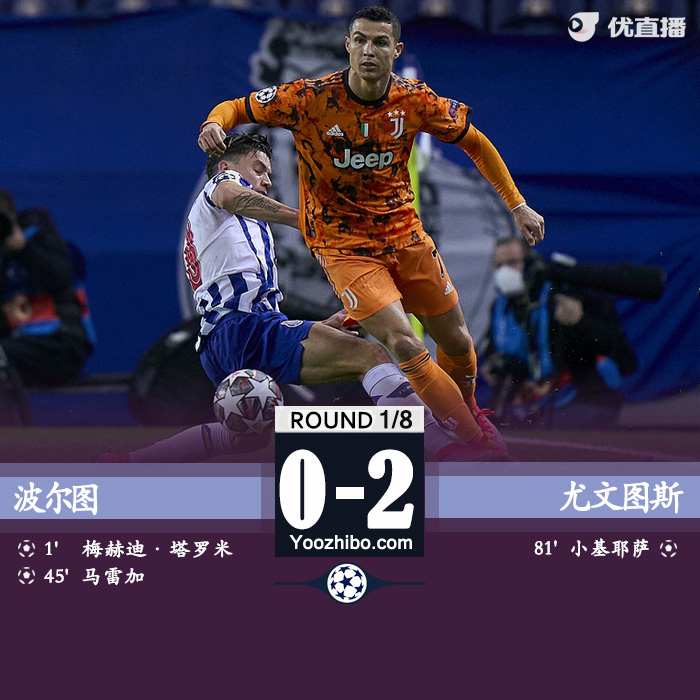 全场比赛结束,尤文客场1-2不敌波尔图。