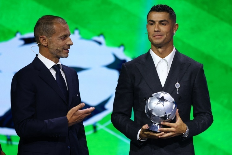 来源:24直播网08-30 15:5824直播网讯 北京时间8月30日凌晨,39岁的葡萄牙巨星C罗作为嘉宾,参加了欧冠抽签仪式,他还领取了欧冠历史最佳射手奖,该奖项由欧足联主席切费林亲自为他颁发。而随后,C罗也动情发表了获奖致辞。