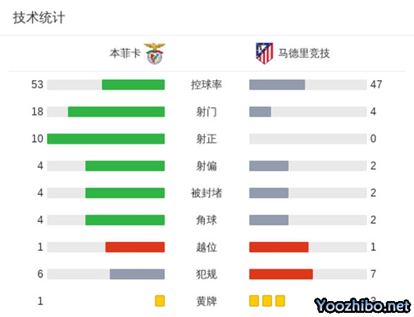 马竞0-4本菲卡 加拉格尔送点迪马利亚点射马竞0射正
