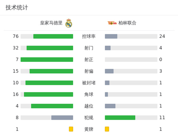 皇马1-0柏林联 贝林厄姆第94分钟绝杀