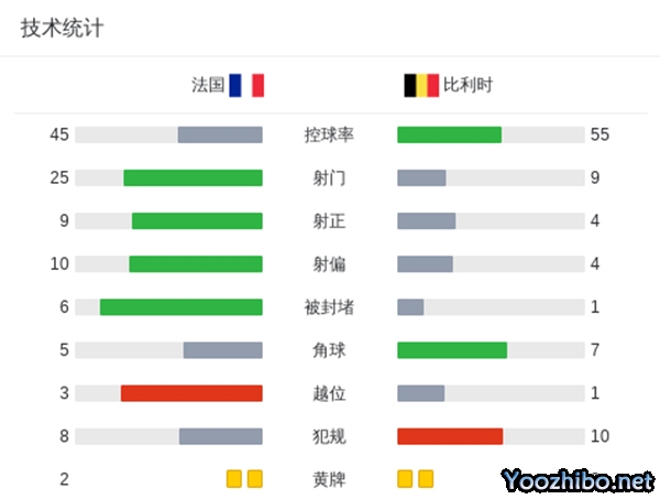 第29分钟,禁区内穆阿尼头球摆渡,坎特送出横传,登贝莱的射门被卡斯特尔斯挡出,随后穆阿尼补射得手,法国1-0比利时。