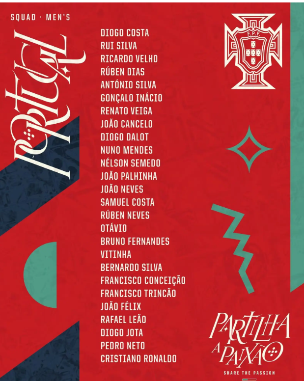 中场:帕利尼亚(拜仁)、若昂-内维斯(巴黎)、奥塔维奥(利雅得胜利)、萨穆-科斯塔(马略卡)、维蒂尼奥(巴黎)、B费(曼联)、B席(曼城)、鲁本-内维斯(利雅得新月)、菲利克斯(切尔西)