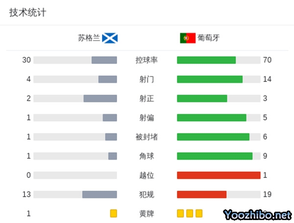 葡萄牙0-0苏格兰三连胜终结继续领跑积分榜 C罗倒钩打偏