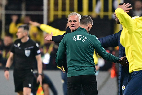 来源:24直播网10-25 15:5824直播网讯在北京时间10月25日凌晨结束的欧联杯联赛阶段第3轮一场焦点战中,费内巴切坐镇主场1-1战平曼联,而本场比赛下半场,费内巴切主帅穆里尼奥因为不满点球未判,被红牌罚上看台。