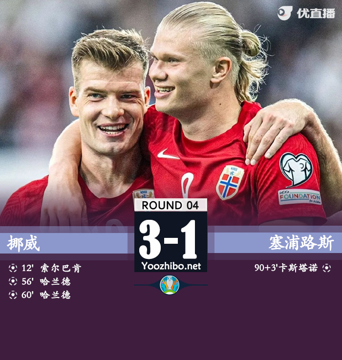 挪威3-1塞浦路斯 哈兰德梅开二度