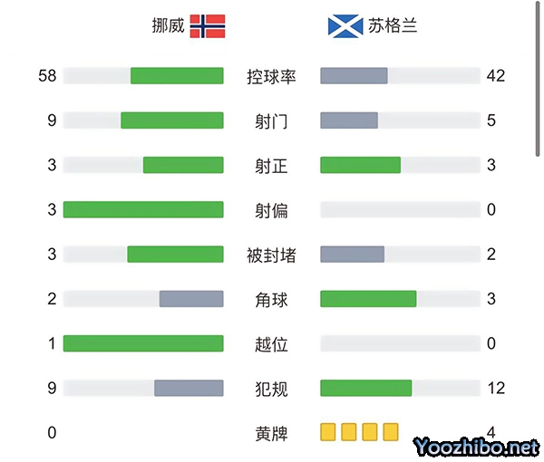 苏格兰2-1挪威 哈兰德点射挪威三轮仅积1分