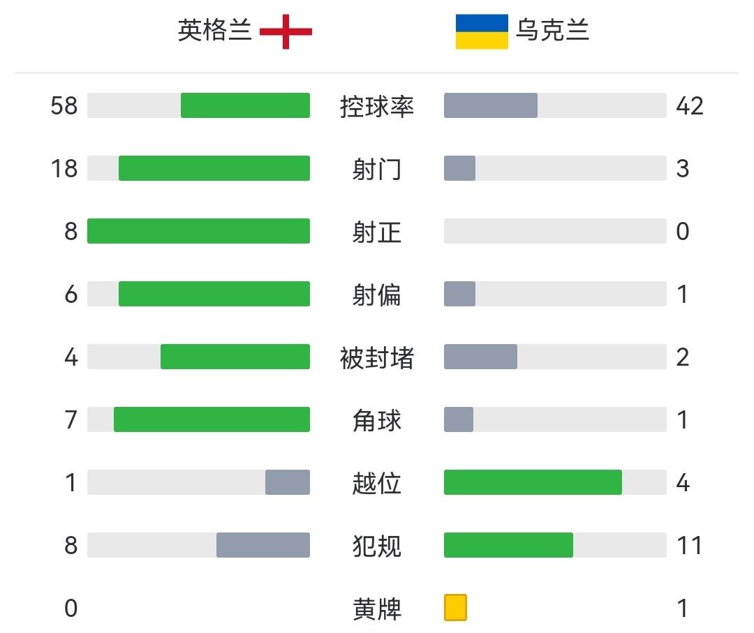全场比赛结束,英格兰2-0乌克兰。