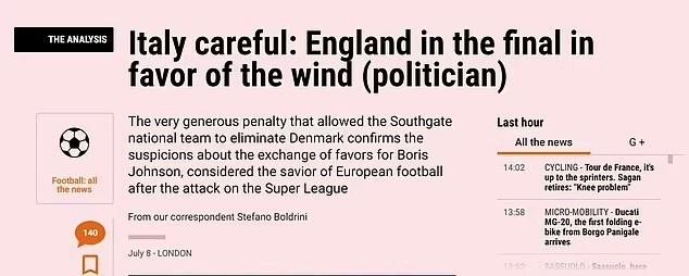 《米兰体育报》表示,斯特林倒地所造的点球是“根本不存在”的,纯粹是欧足联“慷慨”赠予三狮军团的。而英格兰之所以受到欧足联的照顾,是对英国方面狙击欧超联赛的回报。