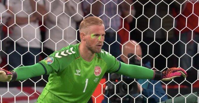 本场半决赛,凯恩主罚点球时,丹麦门将舒梅切尔被英格兰球迷用激光笔晃眼。