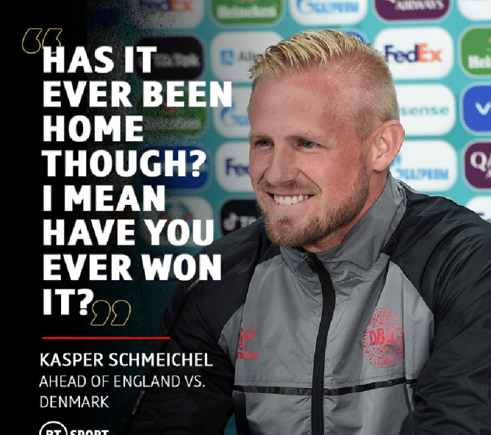 在接受采访时有记者表示:【你可能听到了球迷们的口号“足球回家”,你们怎么阻止足球回家?】小舒梅切尔直接回应:【之前回过家吗?我的意思是,他们之前拿到过欧洲杯冠军吗?老实说对我来说,我们从未想过阻止英格兰意味着什么,欧洲杯对我们国家意义更大。】不得不说,小舒梅切尔的言论一下让记者哑口无言,毕竟英格兰真的没有拿到过欧洲杯冠军。
