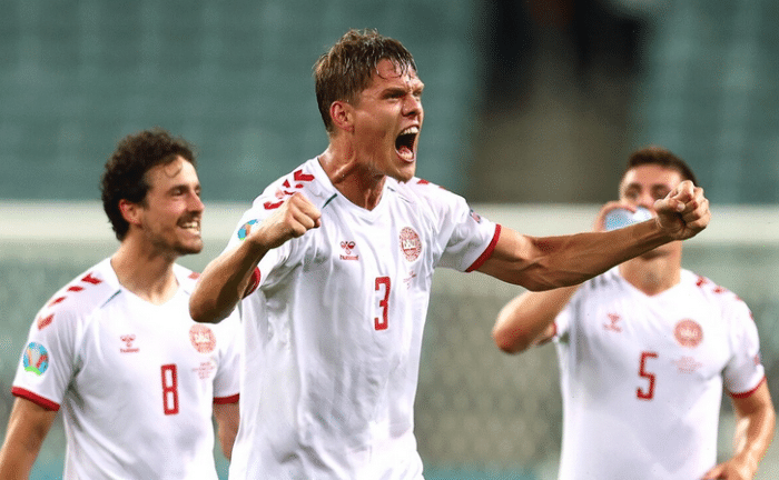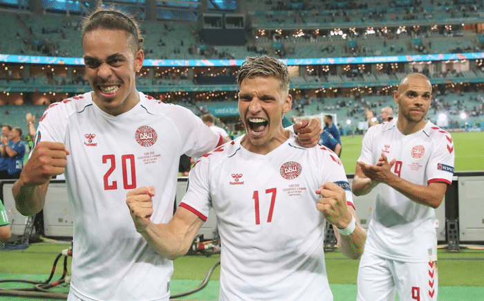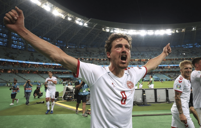 小组赛阶段,丹麦遭遇两连败,先后0-1芬兰、1-2比利时,全队被推到了悬崖边上,眼看就要出局了,丹麦在小组赛第三轮开启大逆袭的好戏,上演丹麦童话,4-1赢下俄罗斯,以净胜球优势惊险晋级16强。1/8决赛,丹麦续写童话,4-0淘汰了拥有贝尔和拉姆塞的威尔士,全队越踢越具整体性;1/4决赛,丹麦2-1赢下了同样是大黑马的捷克,顺利跻身欧洲杯4强。