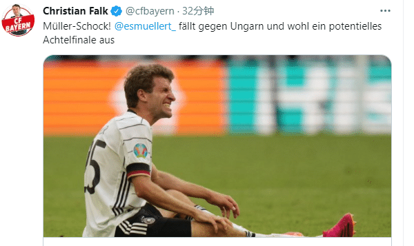 24直播网讯 穆勒在击败葡萄牙的比赛中最后时刻右膝盖受伤,名记法尔克透露,他将无缘对匈牙利的比赛。如果德国晋级16强,他也可能无缘这场比赛。