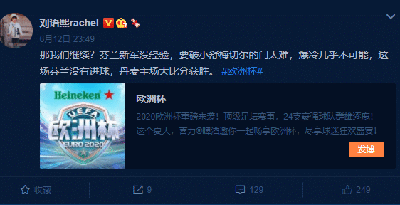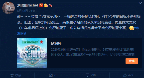 同时刘语熙还谈到了西班牙队会在塞维利亚的主场小胜瑞典,还分析了天气对于瑞典不友好等等。