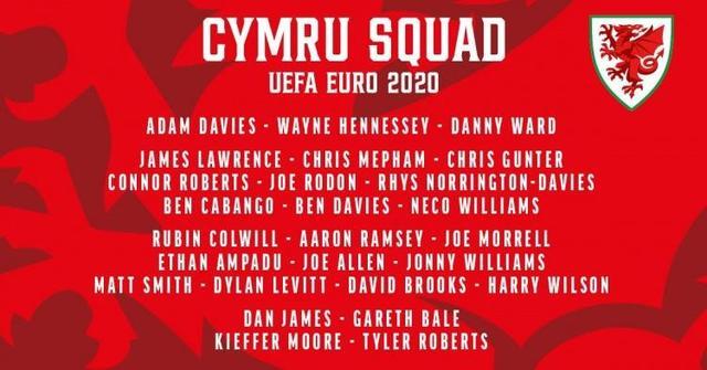 威尔士在本届欧洲杯中与瑞士、土耳其和意大利同组。红龙军团大名单如下: