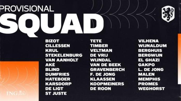 后卫:范安霍尔特(水晶宫)、阿克(曼城)、布林德(阿贾克斯)、邓弗里斯(埃因霍温)、哈特鲍尔(亚特兰大)、卡尔斯多普(罗马)、德里赫特(尤文)、圣朱斯特(美因茨)、特特(富勒姆)、尤里恩-廷伯(阿贾克斯)、维尔特曼(布莱顿)、德弗里(国际米兰)、温达尔(阿尔克马尔)、