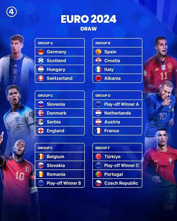 2024欧洲杯完整赛程:揭幕战德国VS苏格兰 7月14日决赛