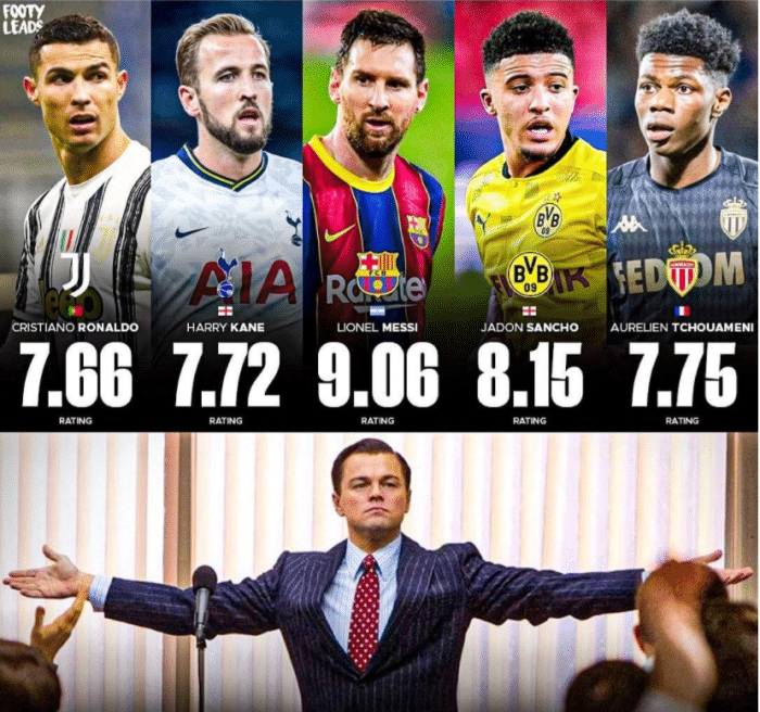今年五大联赛各联赛场均评分最高的球星:梅西独一档,莱万落榜!