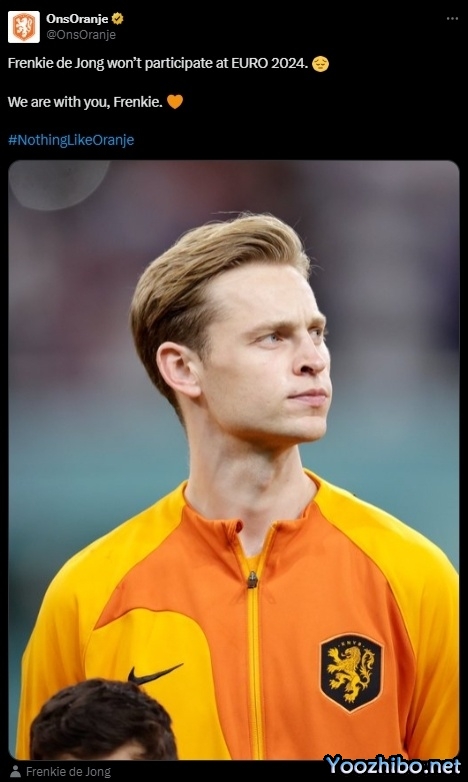 来源:24直播网06-11 12:1424直播网讯 北京时间6月11日,荷兰男足国家队官方宣布,27岁的巴萨中场弗兰基-德容因脚踝伤势无法及时恢复,将缺席今夏的欧洲杯。而随后,德容本人也在社媒予以确认。