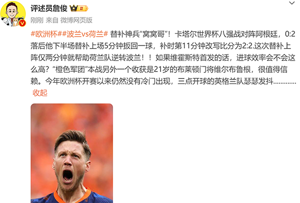 韦霍斯特救主 荷兰击败波兰获开门红
