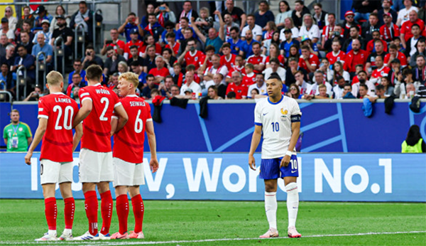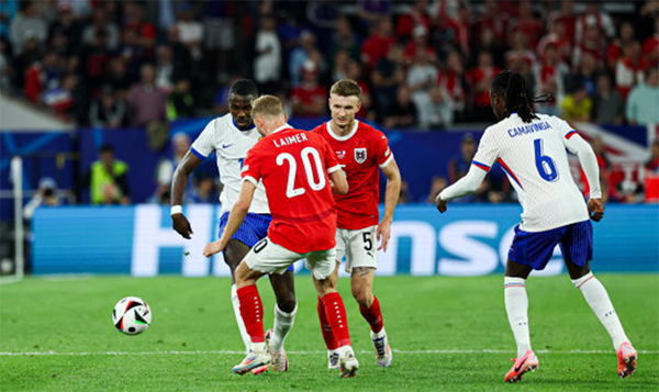 这场比赛法国队的防守令人印象深刻,除了斩获单场MVP的坎特之外,还有两大边后卫,特奥和孔德,全场几乎没有什么失误,奥地利很多次的进攻都是边路发起的,但效果一般。