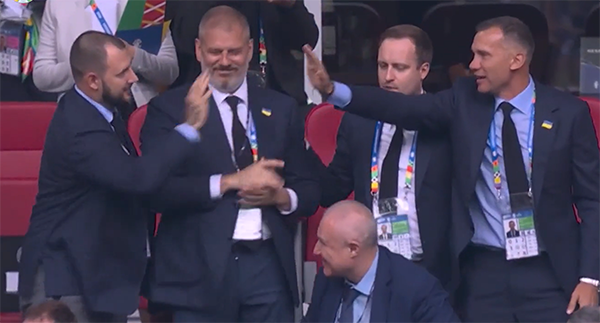 包括看台上乌克兰的足协主席舍甫琴科,也兴奋的庆祝,对于乌克兰队来说,他们此前备受质疑,如今终于迎来在本届欧洲杯的首球,而且还是在落后的情况下打进的,非常不容易。