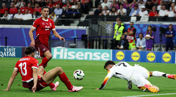 来源:24直播网06-24 11:5024直播网讯 北京时间6月24日,欧洲杯A组迎来大结局,德国队和瑞士正面交锋,争夺小组第一,上半场,安德里希远射破门被吹,恩多耶抢点破门为瑞士队取得领先,如果瑞士队1-0击败德国队的话,那么他们将排名小组第一。到了比赛最后时刻,替补出场的菲尔克鲁格补时绝平,也为德国队重新夺下小组第一,这样A组的德国队小组头名晋级,瑞士队排名小组第二。